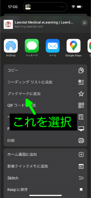 8. メニューが表示されるので、「ブックマークに追加」を選ぶと、ブックマークに追加されます