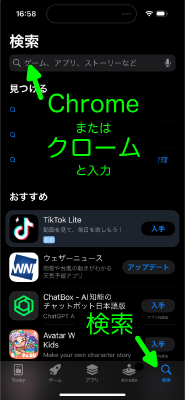 iPhone、iPadには標準でSafariというブラウザ(インターネットを見るアプリ)が入っていますが、SafariではHeartcodeのオンライン講習はきちんと動かないので、Google Chrome というブラウザをインストールして使用する必要があります。